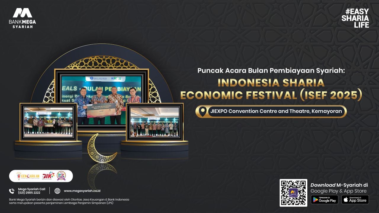 “Sesuai tema ISEF tahun ini yaitu “Muda, Taqwa, Berdaya – Gaya Hidup Halal untuk Kesejahteraan dan Peradaban Islam”, Bank Mega Syariah berharap dapat Sesuai tema ISEF tahun ini yaitu ‘Muda, Taqwa, Berdaya – Gaya Hidup Halal untuk Kesejahteraan dan Peradaban Islam’, Bank Mega Syariah berharap dapat berkontribusi aktif dalam mendorong gaya hidup halal di kalangan masyarakat, untuk berbagai generasi melalui berbagai layanan dan produk keuangan yang inovatif,” ungkap Oney.