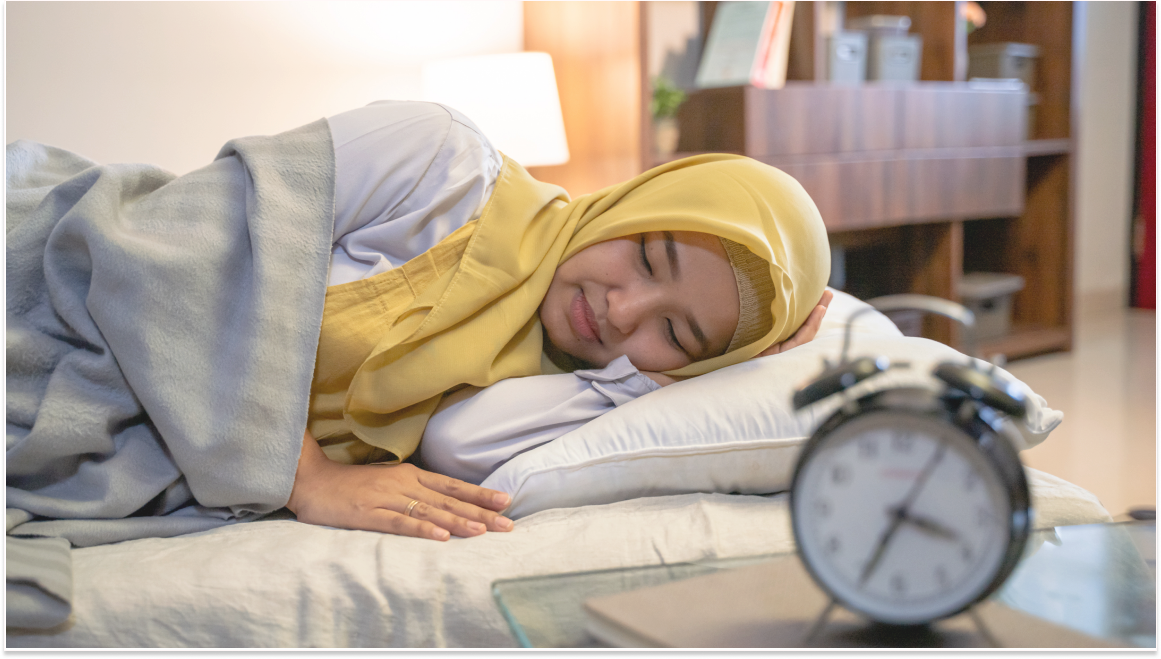 Rasulullah SAW mencontohkan posisi tidur dengan berbaring miring ke kanan, sambil meletakkan telapak tangan kanan di bawah pipi.