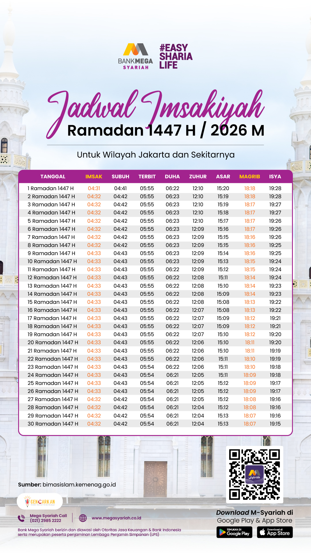 Semoga informasi mengenai jadwal imsakiyah Ramadan 1447 H ini bermanfaat dan membantu Anda dalam mempersiapkan diri menyambut bulan suci, ya!