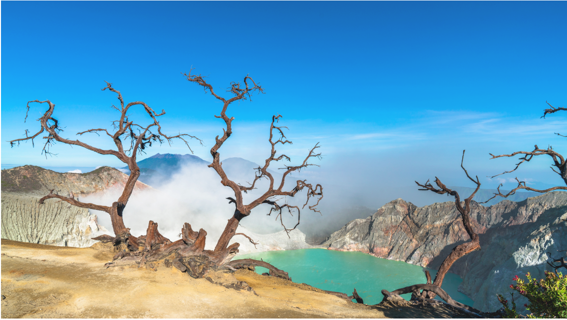 Kawah Ijen terkenal dengan fenomena api biru yang langka dan pemandangan danau kawah yang menakjubkan. Pendakian menuju puncak menjadi pengalaman tak terlupakan bagi wisatawan.