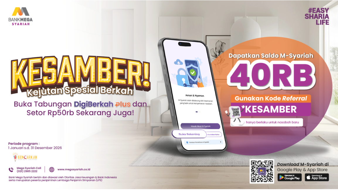 Hanya berlaku bagi nasabah baru di M-Syariah dan membuka tabungan DigiBerkah Plus dengan memasukkan kode referral KESAMBER