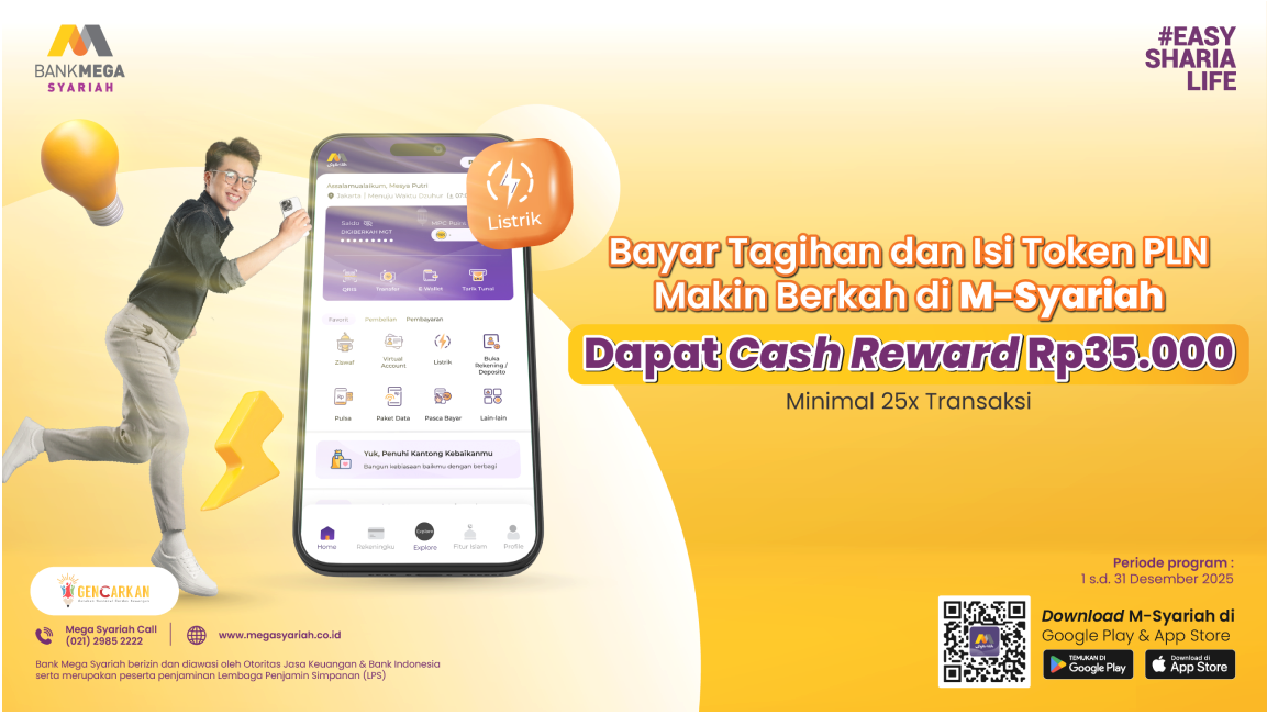 Bayar Tagihan PLN di M-Syariah, Dapatkan Cash Reward Rp35 Ribu!