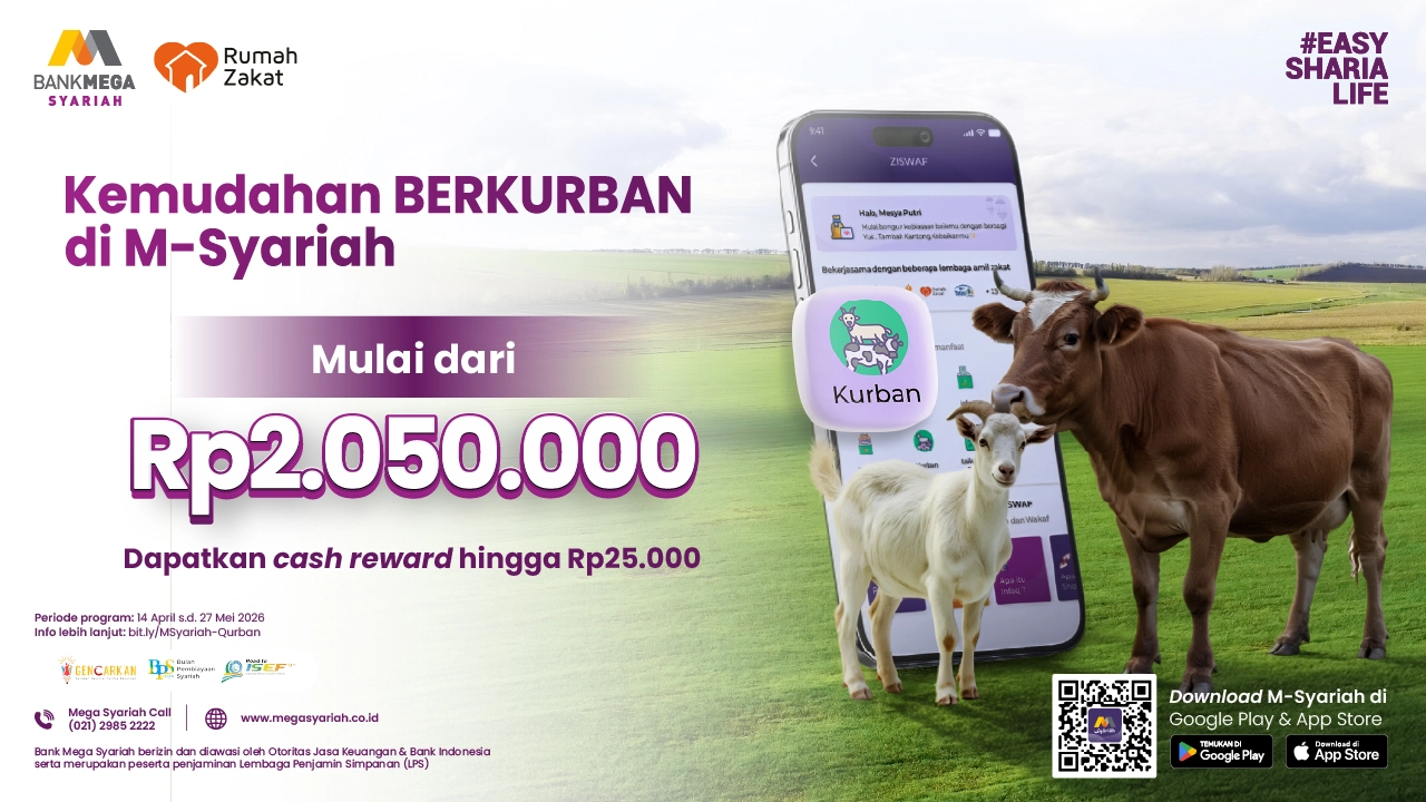 Sambut momen Idul Adha 1447 H / 2026 M dengan persiapan kurban yang lebih mudah, praktis, dan penuh keberkahan bersama M-Syariah. Bersama Rumah Zakat, program ini menghadirkan kemudahan memilih jenis kurban yang sesuai kebutuhan.