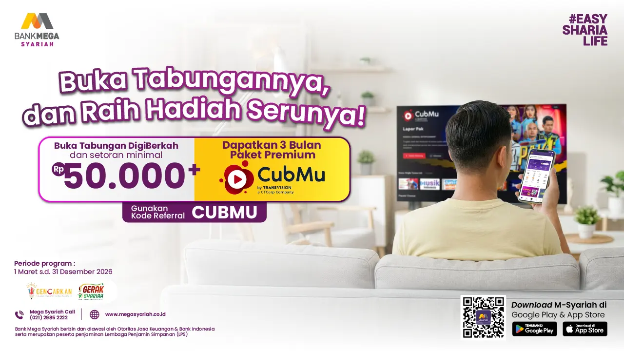 Syarat dan ketentuan dapat berubah sewaktu-waktu sesuai konfirmasi dari Bank Mega Syariah.