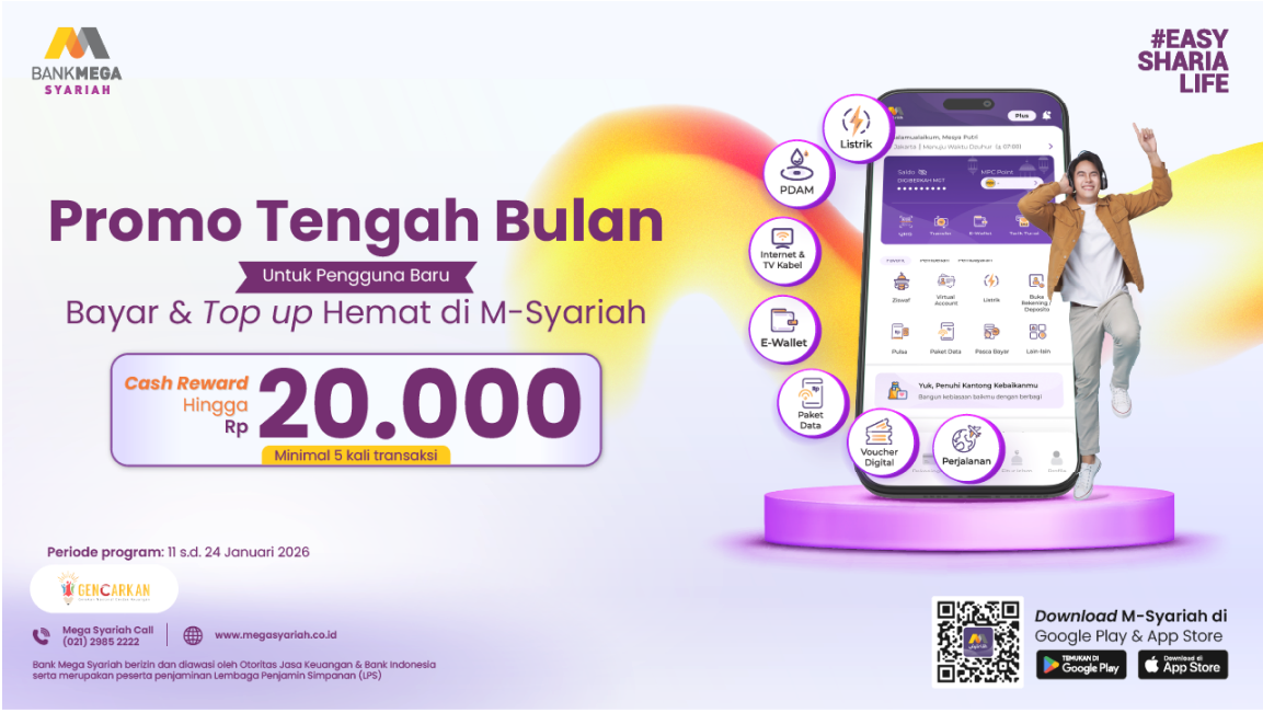Promo Tengah Bulan di M-Syariah, Dapatkan Cash Reward Hingga Rp20.000