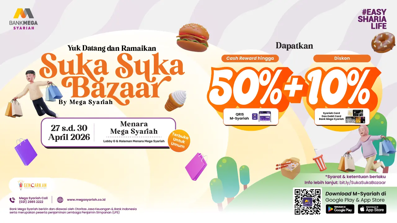 Tunggu apalagi? Yuk, datang dan jajan sepuasnya dengan harga terjangkau di Suka Suka Bazaar by Mega Syariah! Jangan sampai ketinggalan~