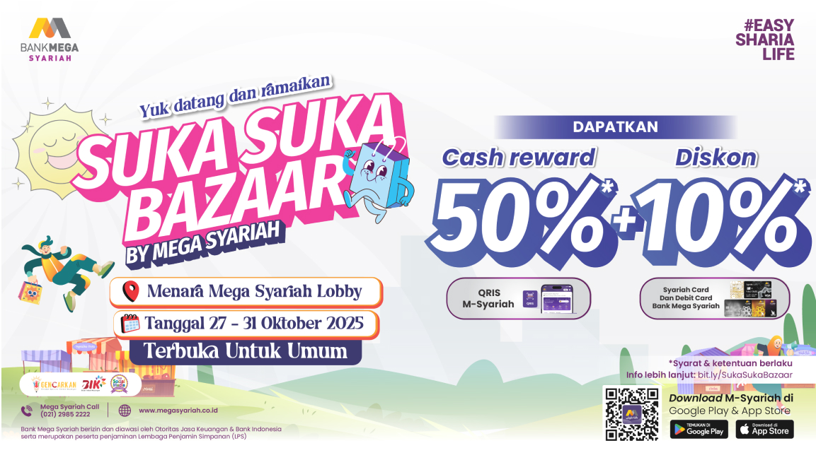 Yuk, persiapkan amunisi dompetmu dan jangan tunda untuk belanja super hemat di Suka Suka Bazaar by Mega Syariah!