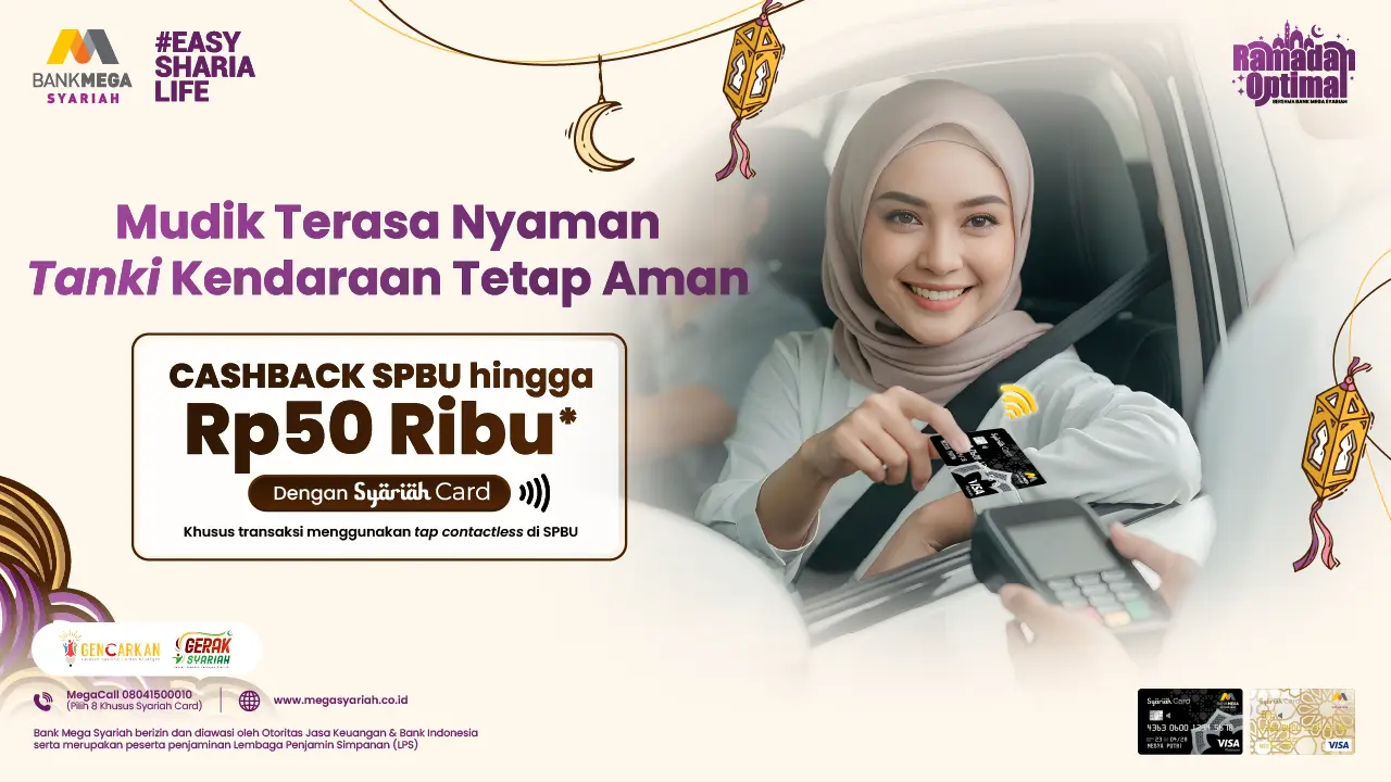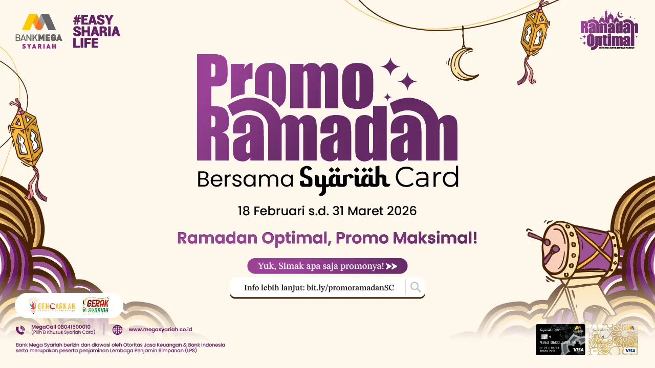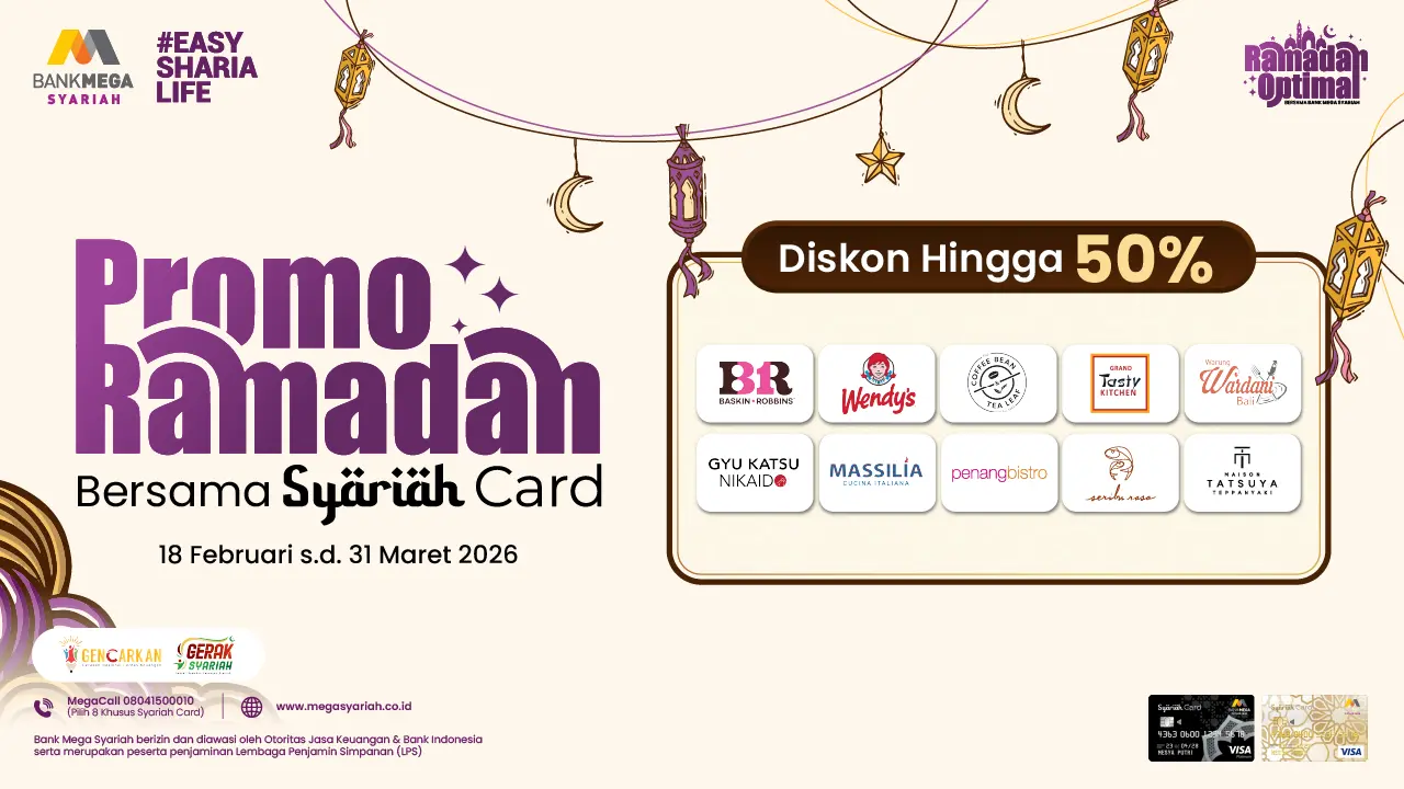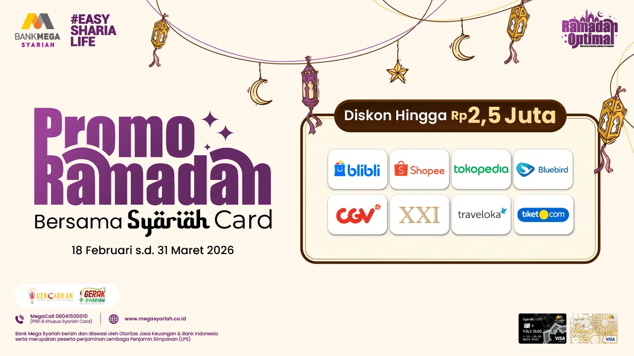 Rayakan momen istimewa di bulan suci Ramadan 1447 H dengan beragam promo berkah Ramadan bersama Bank Mega Syariah. Raih kesempatan mendapatkan berbagai diskon spesial untuk Insan BMS yang melakukan transaksi dengan kartu pembiayaan Syariah Card di sepanjang bulan Ramadan.