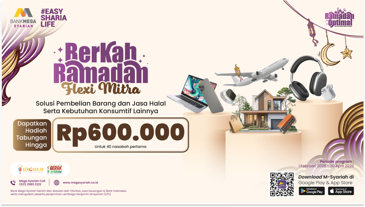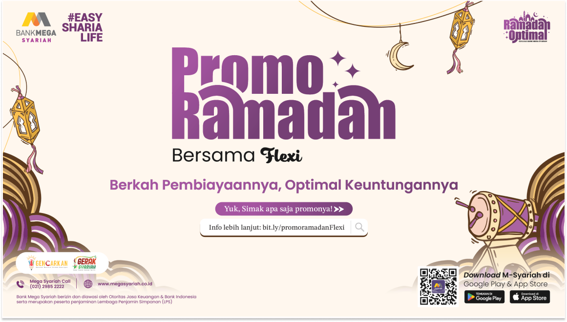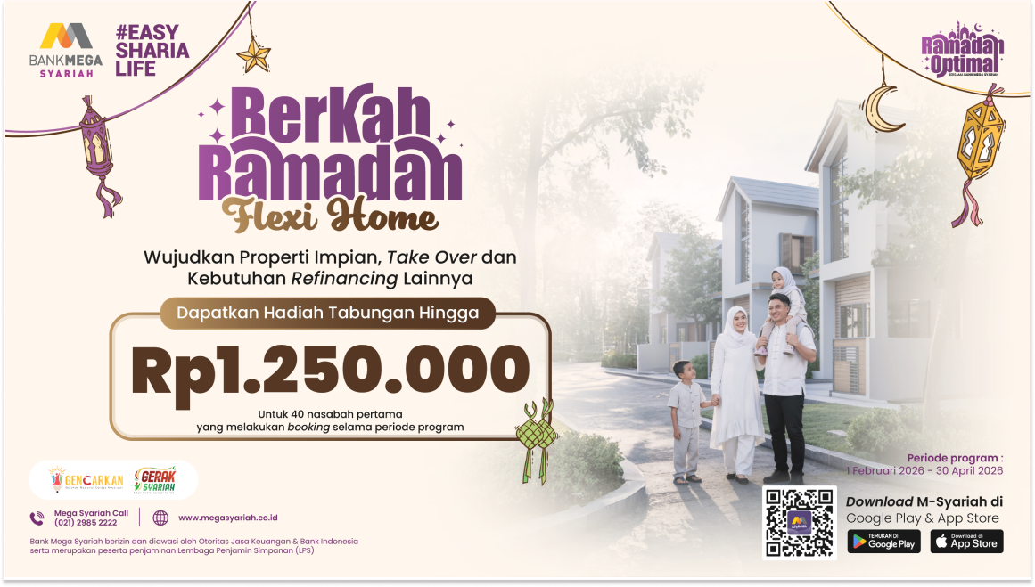 Mari bersama-sama meraih keberkahan hunian dan finansial di Bulan Suci Ramadan 1447 H bersama Program Berkah Ramadan Flexi dari Bank Mega Syariah! Mulai dari kepemilikan rumah hingga pembiayaan tanpa agunan untuk kebutuhan halal, seluruh program Flexi hadir dengan kemudahan proses dan promo menarik selama periode Ramadan.