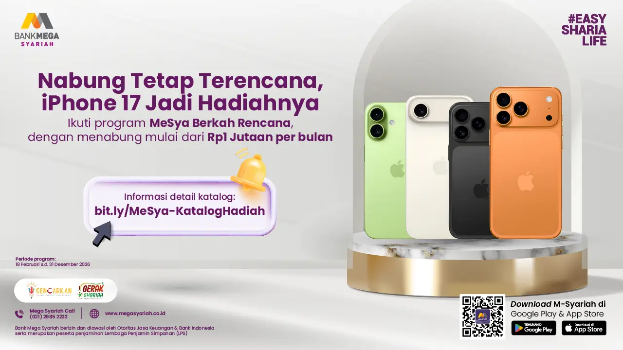 Saatnya merencanakan keuangan dengan lebih bijak dan penuh keberkahan. Yuk, ikuti program MeSya Berkah Rencana untuk meraih berbagai hadiah menarik!