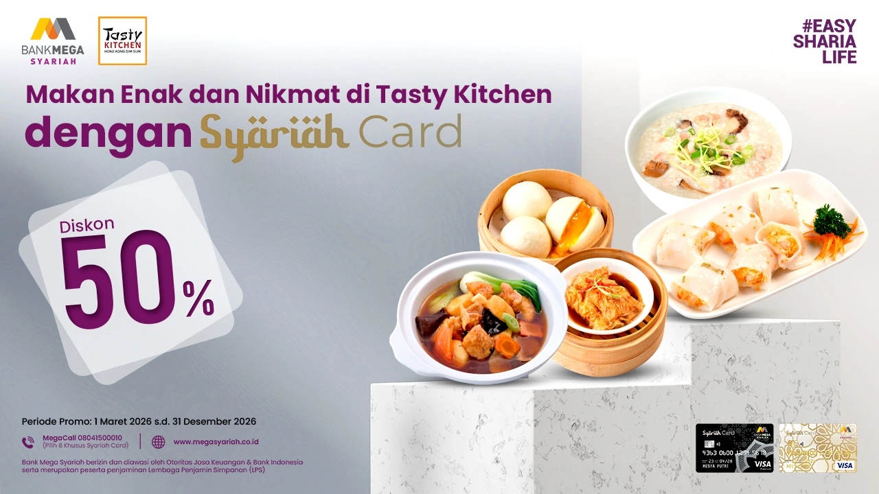 Ajak keluarga, teman, dan orang tersayangmu untuk menikmati menu spesial Tasty Kitchen, yuk! Ada diskon 50% buat kamu pengguna Syariah Card.