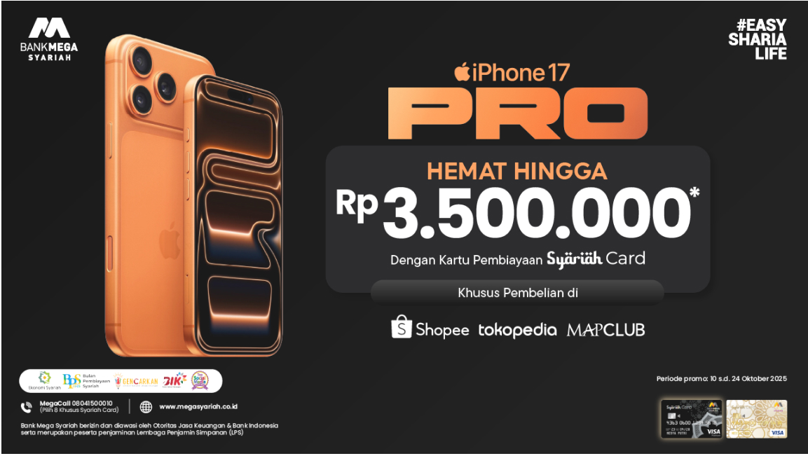 Upgrade ke iPhone 17 Pro, Raih Cashback dan Diskon dari Syariah Card!
