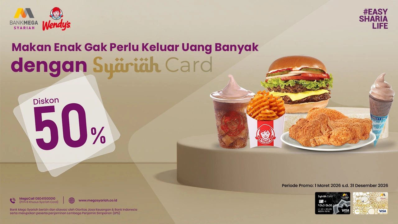 Yuk, ajak keluarga untuk menyantap menu spesial di Wendy’s! Bagi para pemilik kartu Syariah Card, ada diskon 50% buat kamu.