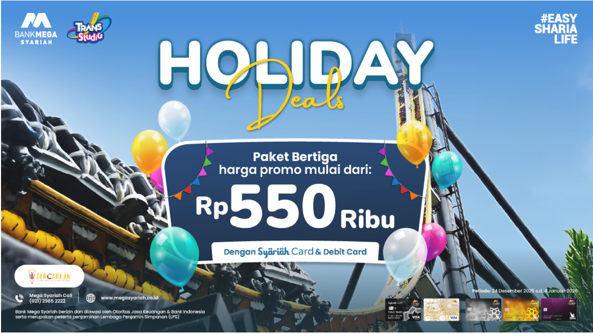 Jadi, tunggu apa lagi? Kesempatan bermain lebih seru dengan harga terjangkau di Trans Studio belum tentu datang dua kali. Langsung saja ajak keluarga, teman, sampai kerabat untuk berlibur di Trans Studio terdekat. Gunakan juga promo dari Syariah Card dan Debit Card Bank Mega Syariah agar liburan menjadi jauh lebih hemat dan menguntungkan!