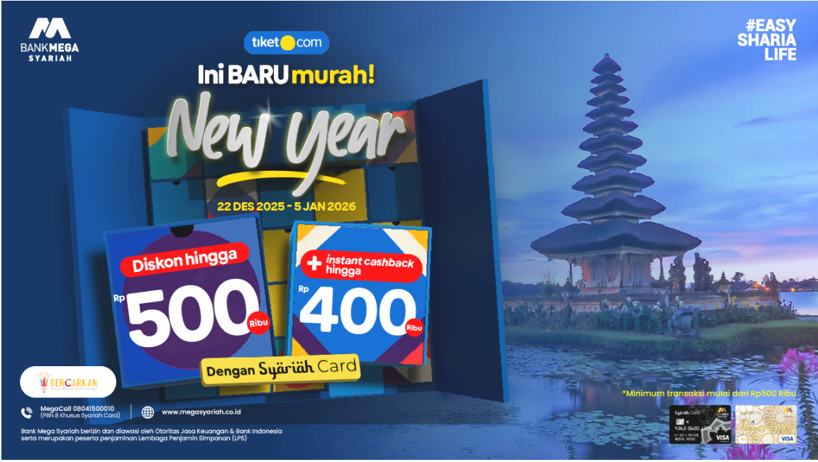 Yuk, rencanakan perjalanan akhir tahunmu dengan lebih hemat di Tiket.com dan gunakan Syariah Card untuk menikmati berbagai promo menarik lainnya. Jangan sampai ketinggalan, periode promo terbatas!