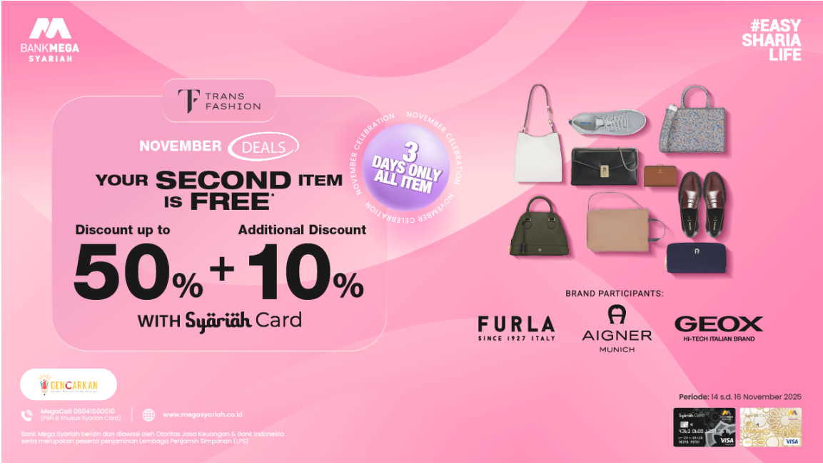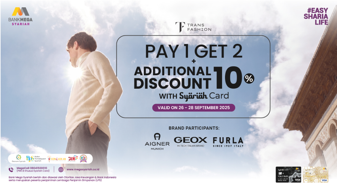 Yuk, belanja di Trans Fashion Indonesia dan dapatkan diskon menariknya. Jangan lupa untuk gunakan Syariah Card agar transaksi lebih mudah dan menguntungkan!