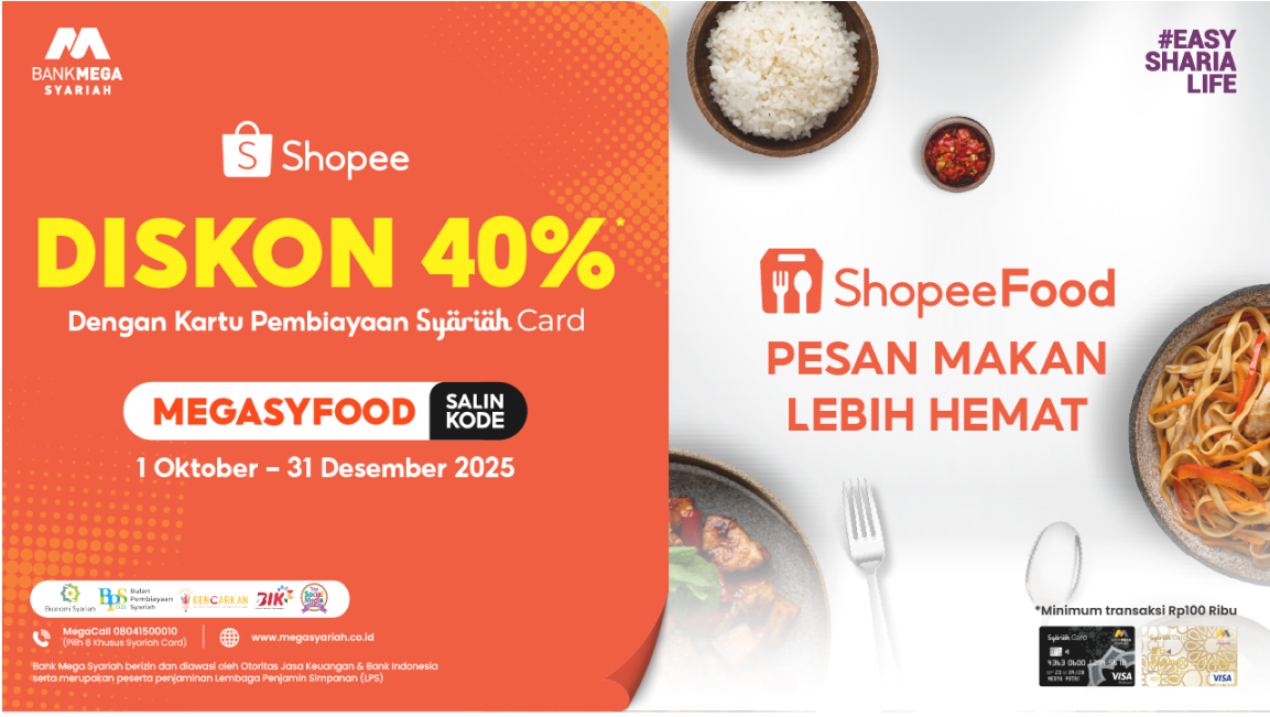 Promo ini berlaku untuk pemegang Syariah Card Platinum dan Syariah Card Gold Bank Mega Syariah dan hanya berlaku dari 1 Oktober - 31 Desember 2025.