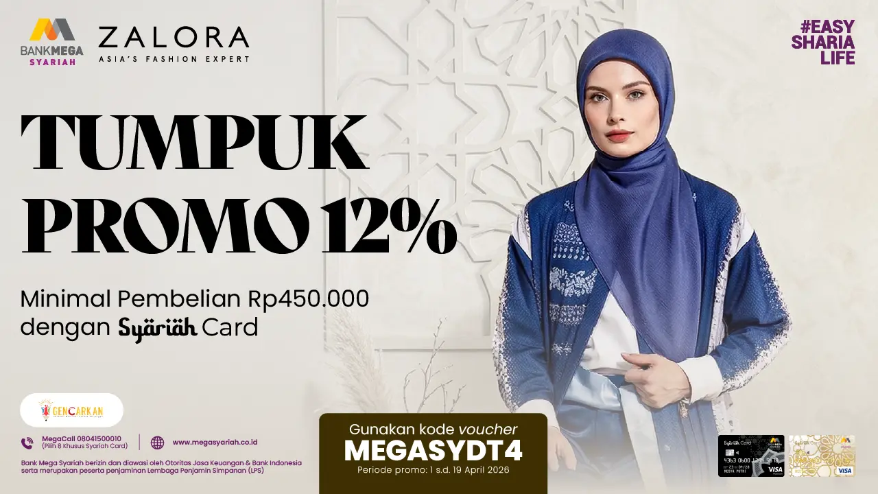 Nikmati diskon tambahan 12% khusus untuk pengguna Syariah Card Platinum & Syariah Card Gold. Dengan diskon ini, kamu bisa belanja berbagai fashion pria dan wanita lengkap dengan diskon maksimal Rp120.000 menggunakan kode MEGASYDT4 pada halaman checkout di aplikasi atau website ZALORA.